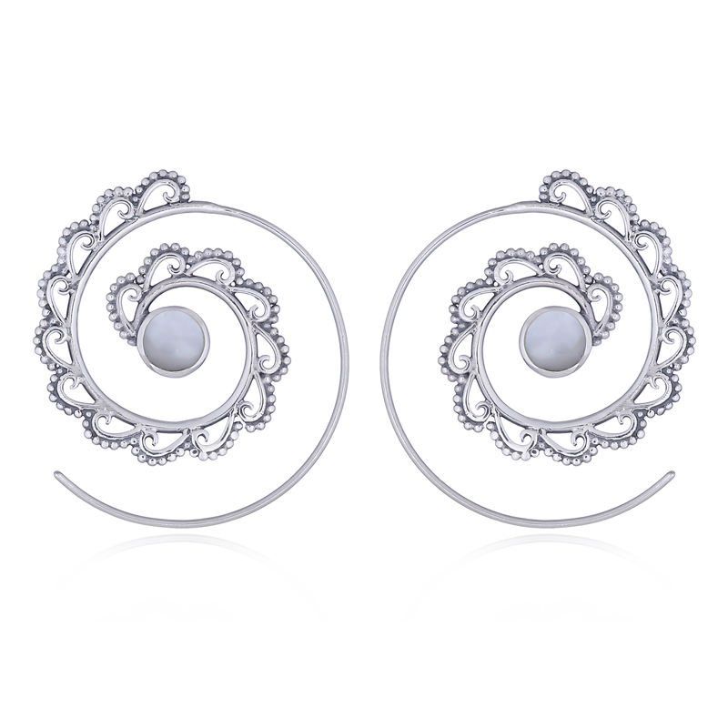 Spiral Mother of Pearl Boho Sterling Silver Drop Earring