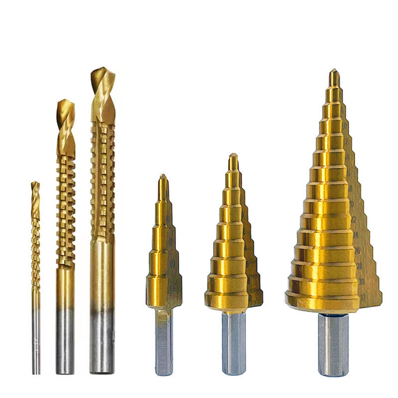 Spiral Straight Groove Step Drill Bit Titanium Coated HSS Wood Hole Cutter Core Drilling Tools