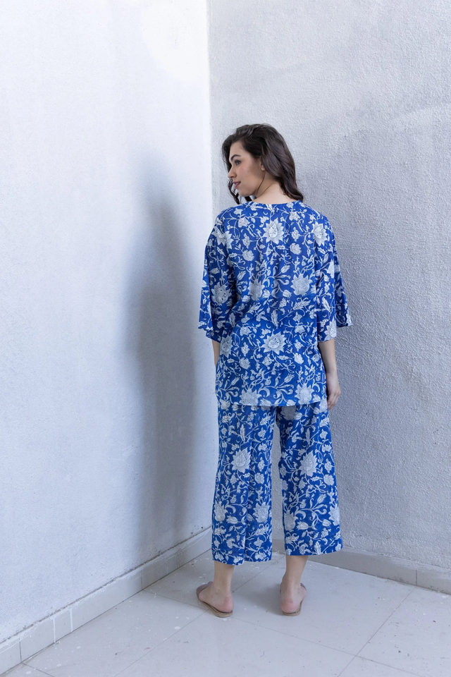 Splash Blue 100% Cotton Lounge Wear Suit for Women V-Neck Top Irresistibly Soft and Comfortable Fashionable for Summer Season