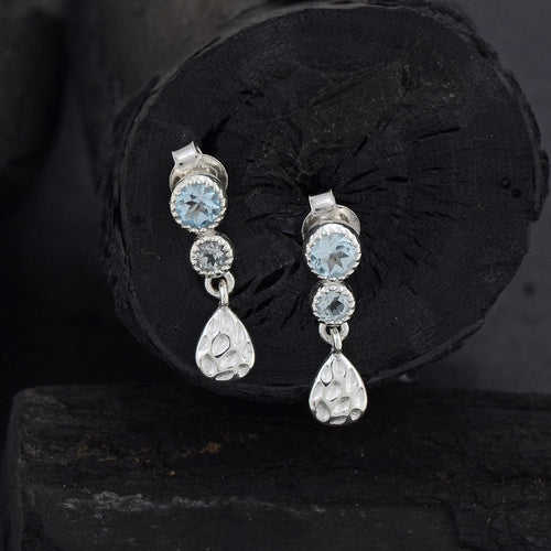 Splendid Natural Blue Topaz Gemstone Fine Silver Jewelry 925 Sterling Silver Plated Dangle Hook Earrings Studs for Cute Girls
