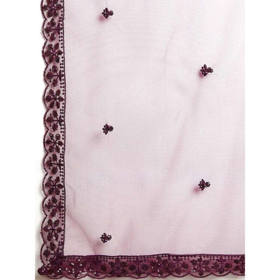Splendid Wedding Apparel Wine Embroidered Net Lehenga Choli with Dupatta for Reception Wear
