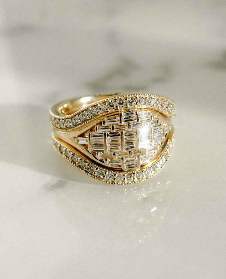 Split Shank Eye Shapes Original Moissanite Diamond Promise Ring Baguette Cut 925 Silver with Gold Plated Anniversary Party Ring