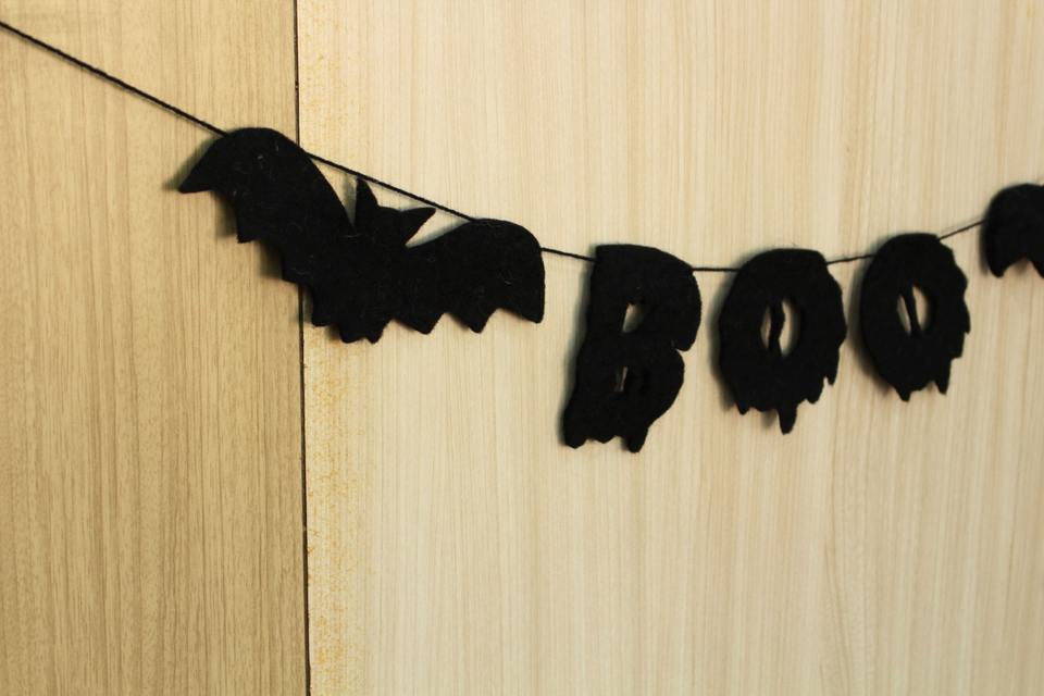 Spooky BOO Bat Garland Halloween Decoration Black Felt BOO Banner with Bat Shapes Hanging Halloween BOO Garland handmade Boo