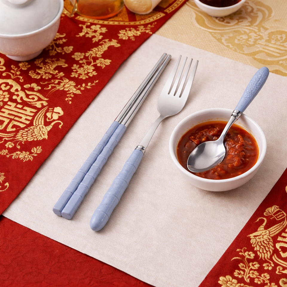 Spoon Fork Chopsticks Set Reusable Chopsticks Set Asian Tableware Set Modern Flatware Set Luxury Dining Cutlery Premiumum