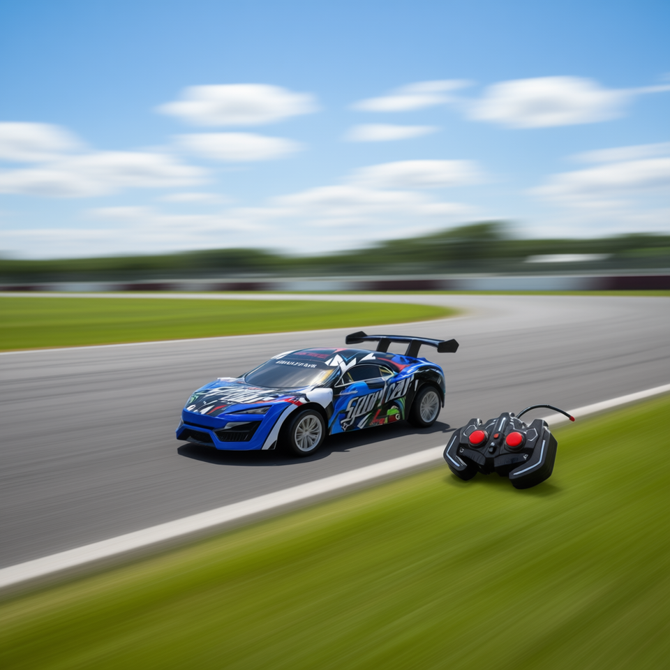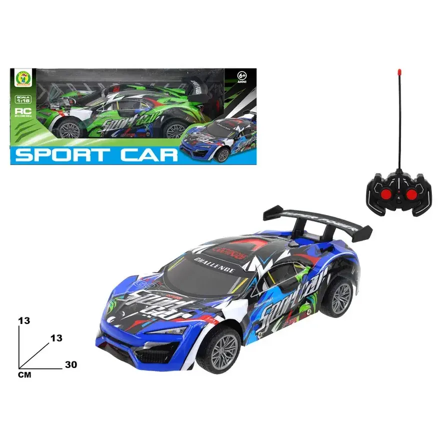 Sport Car Rc 1 16 Scale Remote Control Toy Vehicle For Kids 30 Cm Length Blue Green Design With Controller