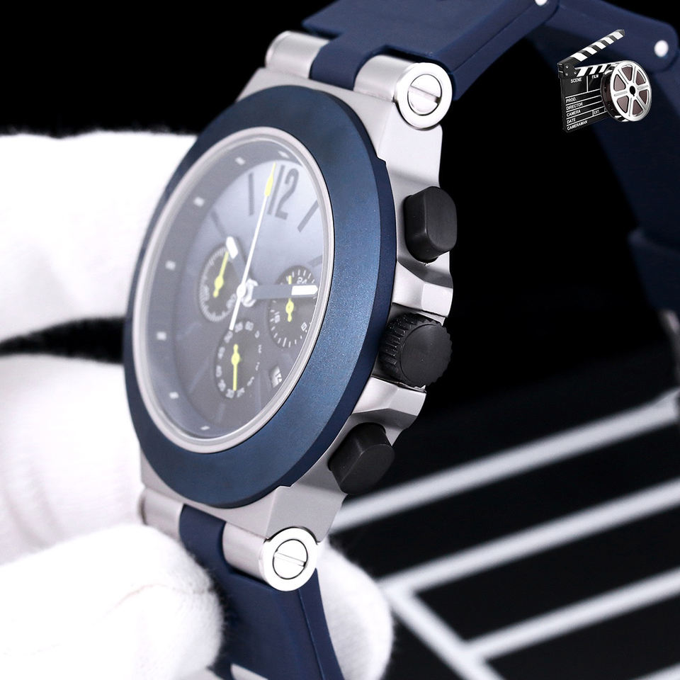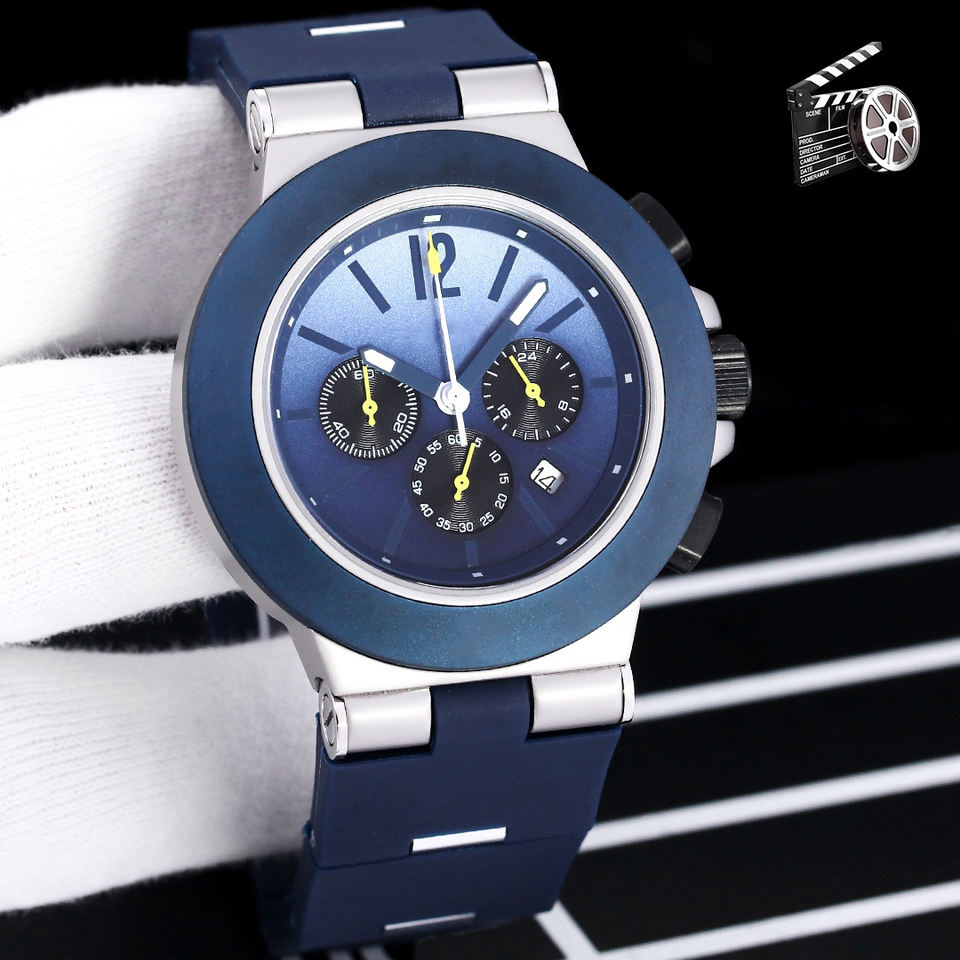 Sport Chronograph Quartz Watch 45mm Multi Time Zone Titanium Case Rubber Strap Men Wristwatch