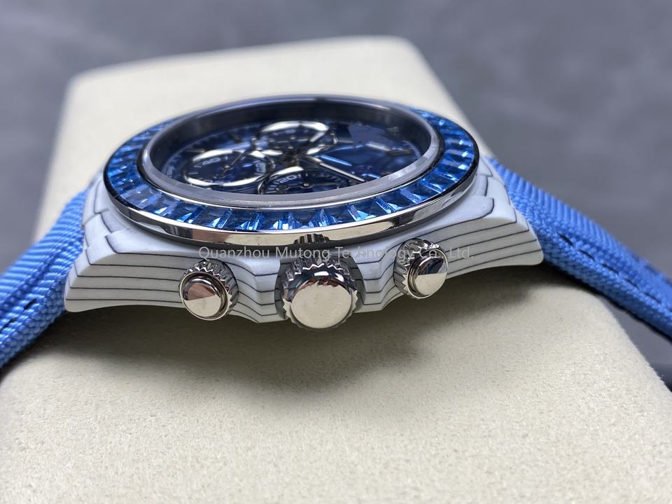 Sport Mechanical Watch Skeleton Design 40mm Waterproof Blue Diamond Gemstone High Quality White Carbon
