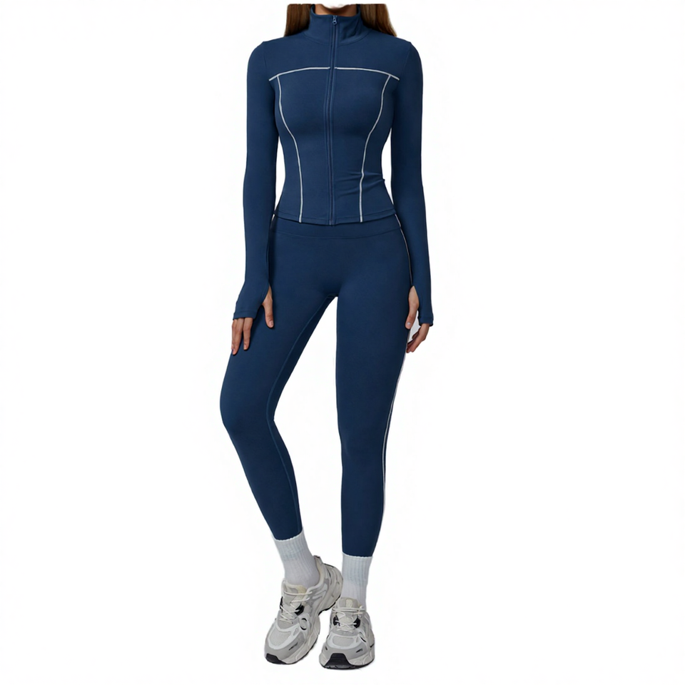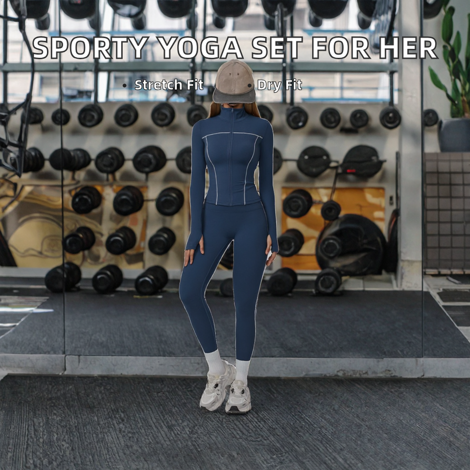 Sport Woman Outfit Color Blocking 2 Piece Jacket Solid Colour Sexy Wearing Pants Elastic Waist Sweat-Wicking Spandex/Nylon Low
