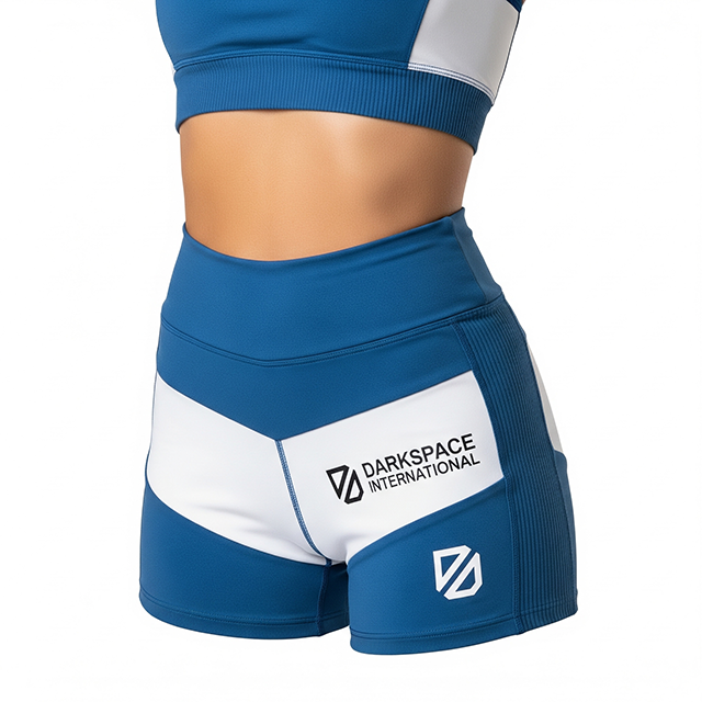Sports Apparel Hot Sale Skinny Blue & White Fitness Set Wholesale New Arrival Women's Gym Sets Elastic Waist Top Short Set