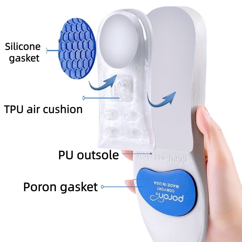 Sports Comfort Arch Support Height Increase Gel Insoles for Running Shockproof Anti-Slip Long Standing Men Women
