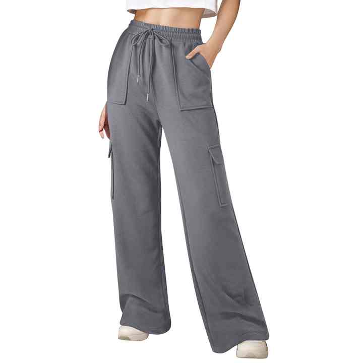 Sports Gym Wear Casual Ladies Trouser Stacked Baggy Wide Leg Joggers Pants With Side Multi-Pockets Women Cargo Pants & Trousers