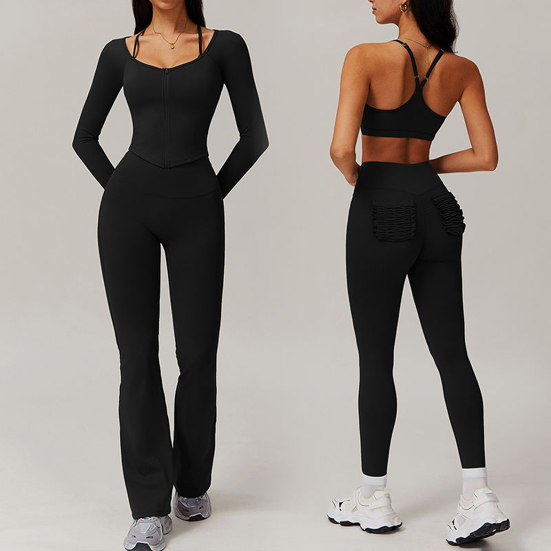 Sportswear Suits Gym Jacket Yoga Leggings Workout Tracksuit Active Wear 4pcs Women Gym Fitness Set
