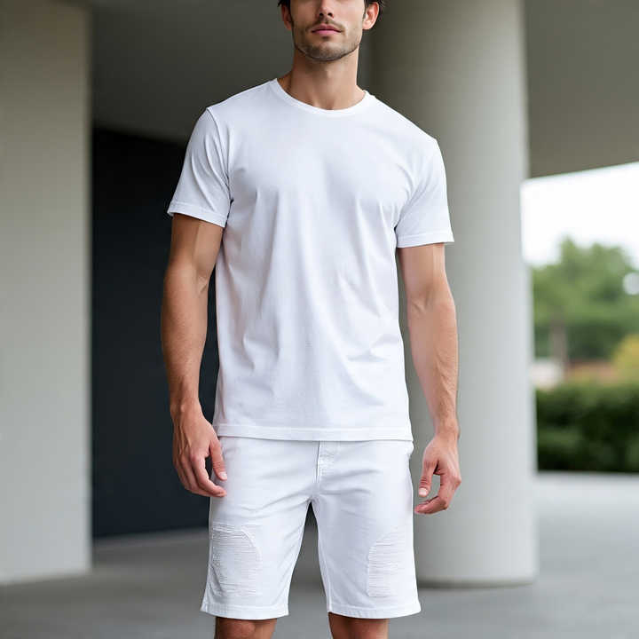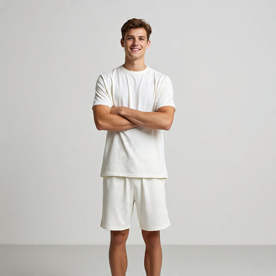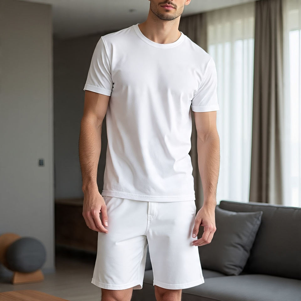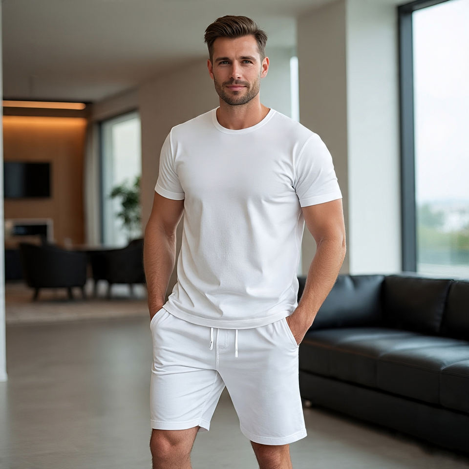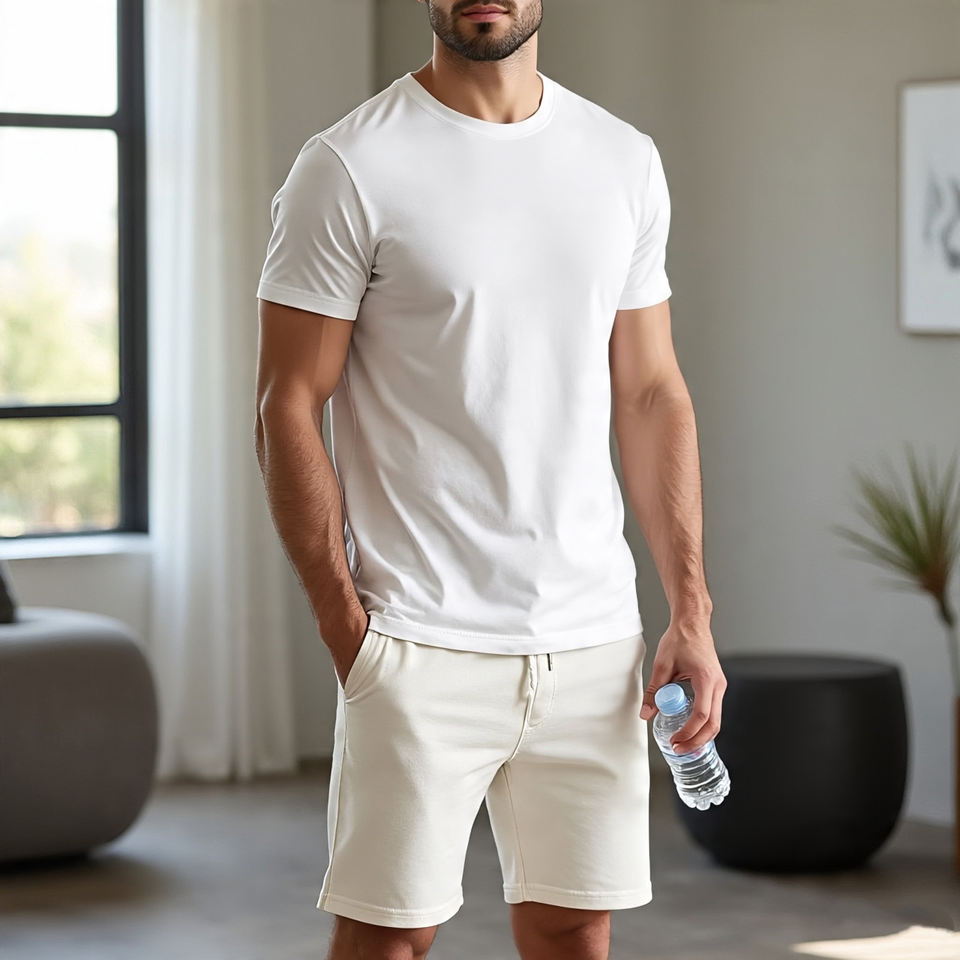 Sportswear Training T Shirt Shorts Two Piece Set Men's 100% Cotton Shorts Set White Tee Top Shorts Set Mens