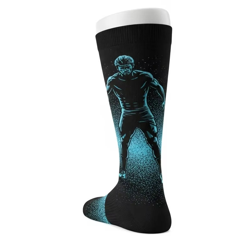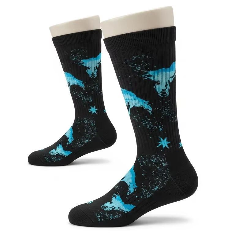 Sporty Knitted Polyester Nylon Sports Socks Breathable Digital Print Athletic Gym Running Cycling Training Fitness Casual Wear
