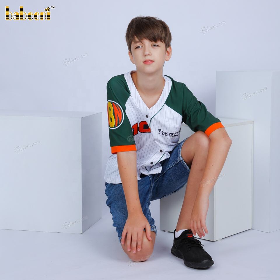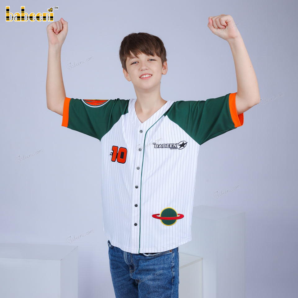 Sporty Print and Embroidery Baseball Teen Boy Shirt - TB 39