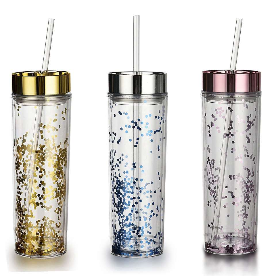Product Name:15 OZ Plastic Double Layer Straight Cup With Straw For Drink