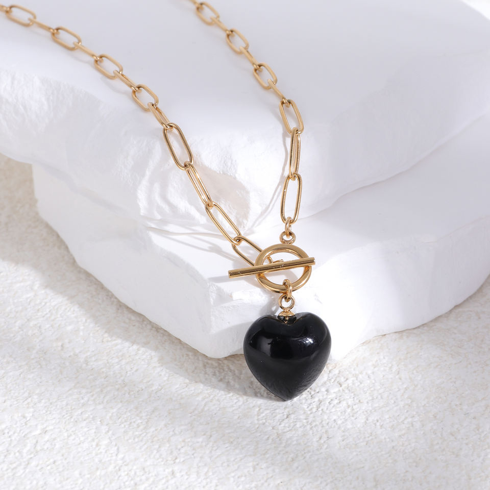 Spot Goods Unisex OEM/OEM Custom Stainless Steel Gold Silver Plating Trendy Agate Heart Stone Pendant Necklace