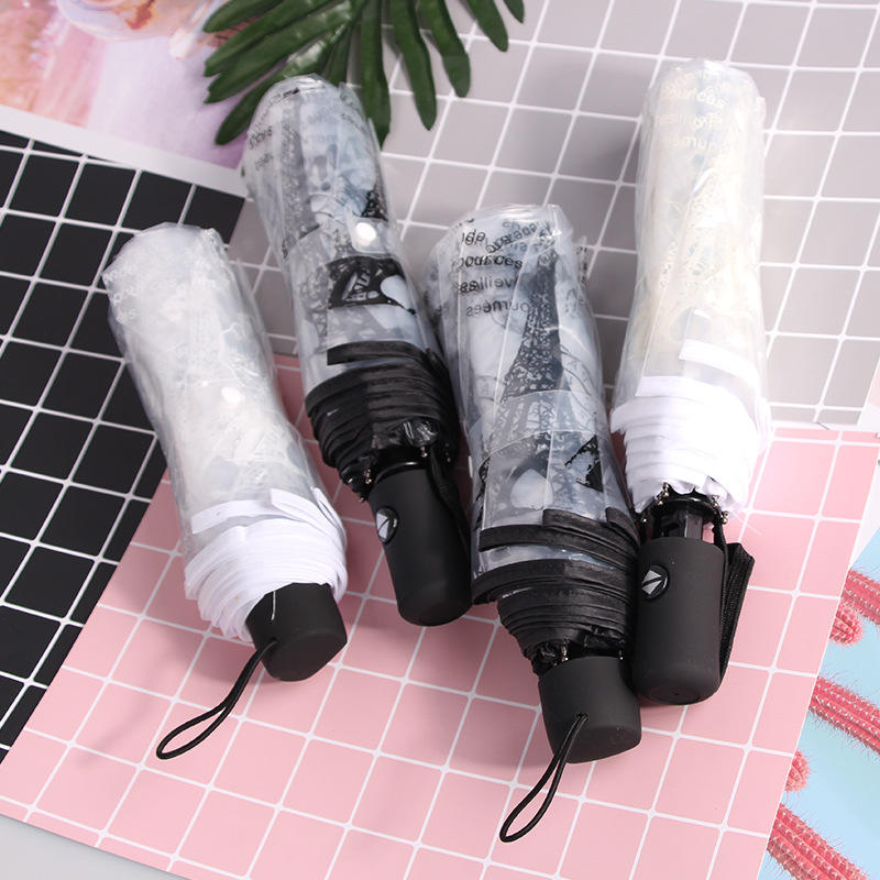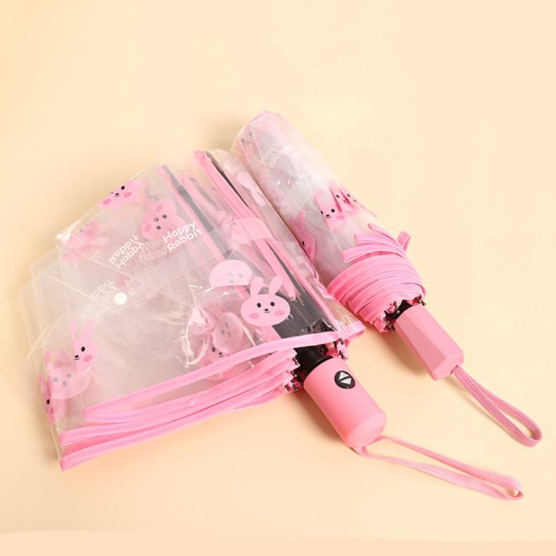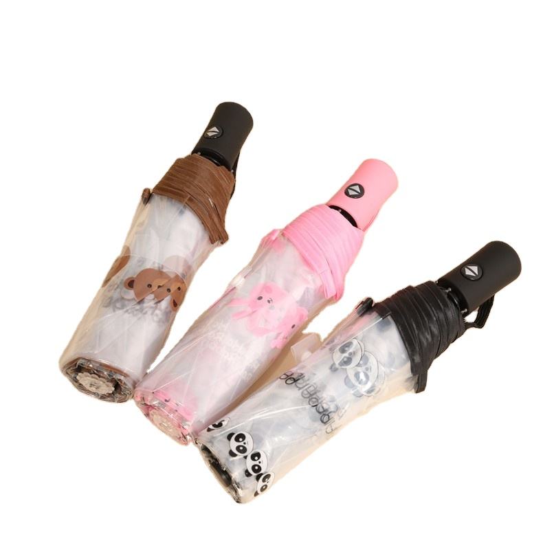 Spot Hot Sale 8 Bone Full Automatic Small Fresh Three Fold Transparent Umbrella Manual Plastic Handle Printing LOGO Advertising
