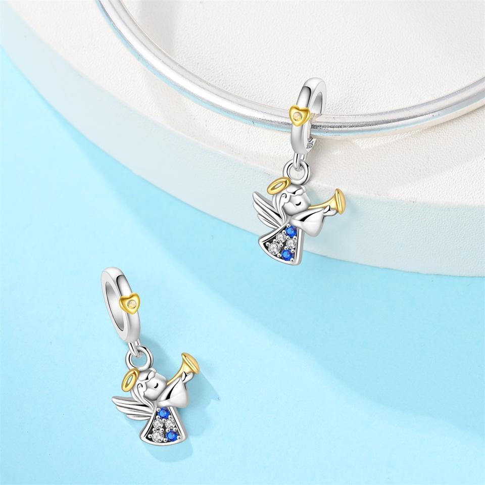 Spot wholesale S925 sterling silver Our Lady Angel charm zircon cross pendant for making DIY bracelet