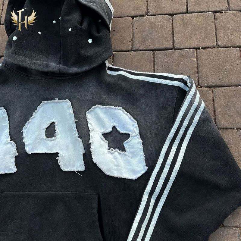 Spray Wash Hoodie Boxy Baggy French Terry 480GSM Cotton Applique Embroidery Double Layer Hood No String Rhinestone Hoodie