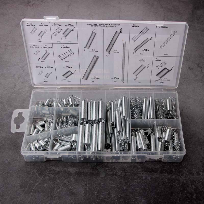 Spring Assortment Set 200pcs Tension Compression Steel Wire Tool Kit Home Craft Supplies Transparent Box