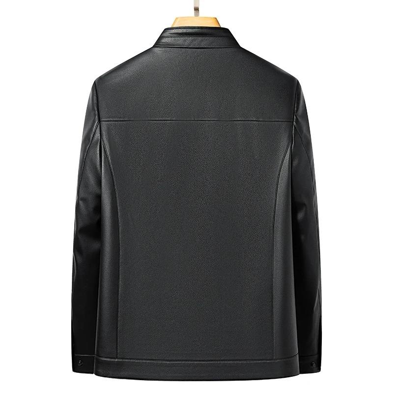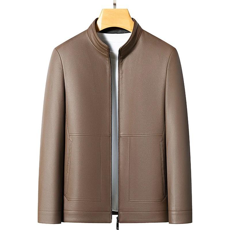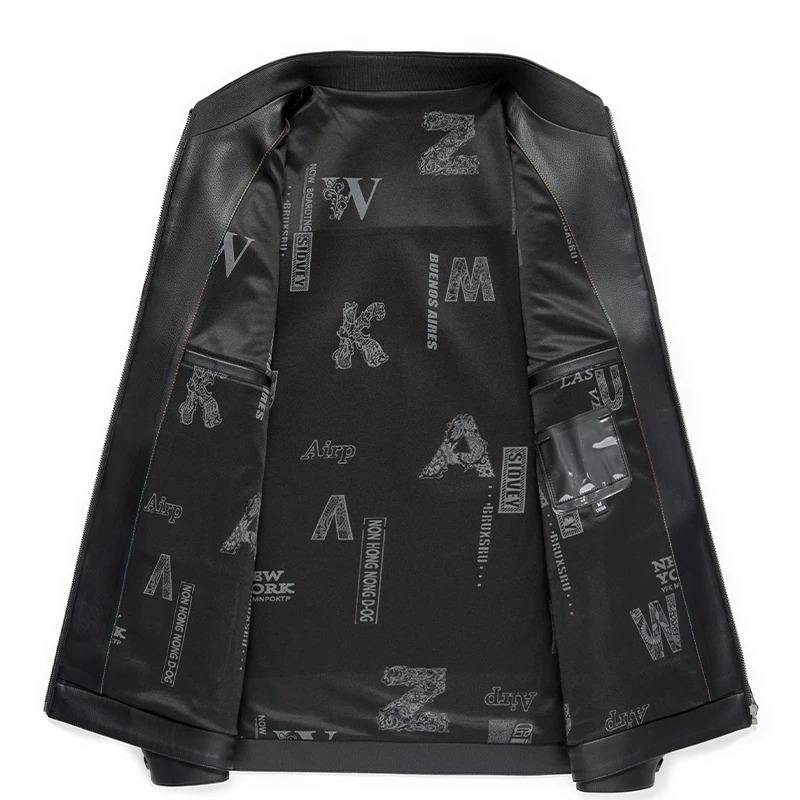 Winter High Street Leather Jacket Men Mandarin Collar Slim Casual Windproof Waterproof Thick Coat