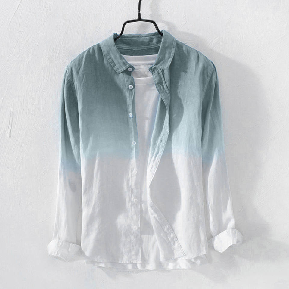 Spring/Autumn Men's Energy Orange Gradient Long Sleeve Shirt Breathable Cotton Linen Lapel Loose Fit Streetwear Blouse