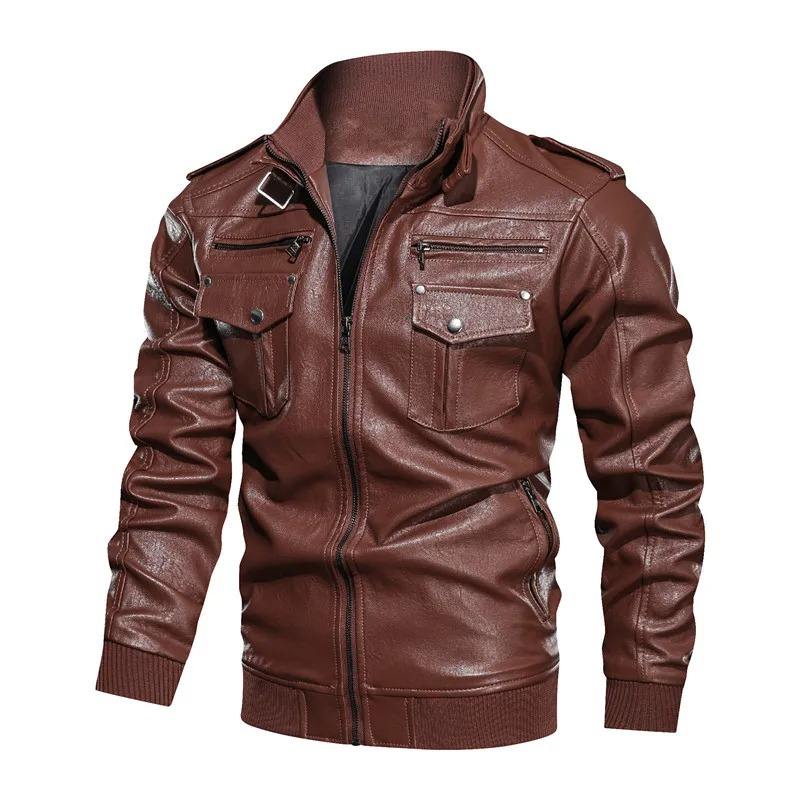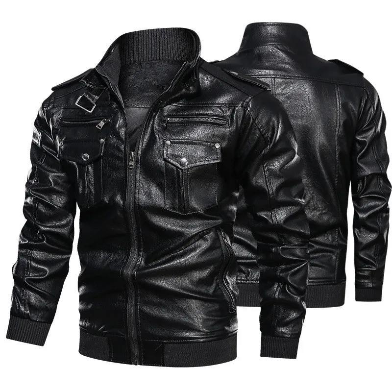 Spring Autumn Multi-pocket PU Leather Jackets for Men Clothing Punk Style High Street Motorcycle Jacket Coats