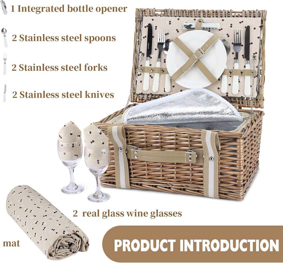 Spring Basket Antique Factory Handbag Holiday Leather Details for Two Outdoor Vietnam Weaving Storage Small Picnic Baskets