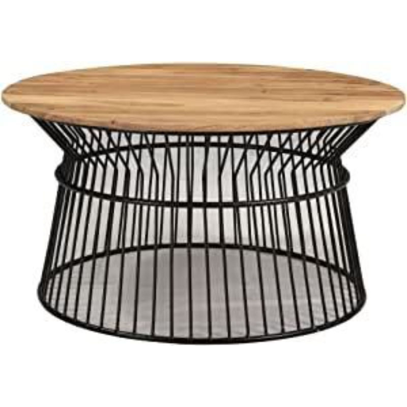 Spring Design Round Coffee Table For Living Room Decor Vintage Wood Top Black Metal Frame Furniture Side Tables