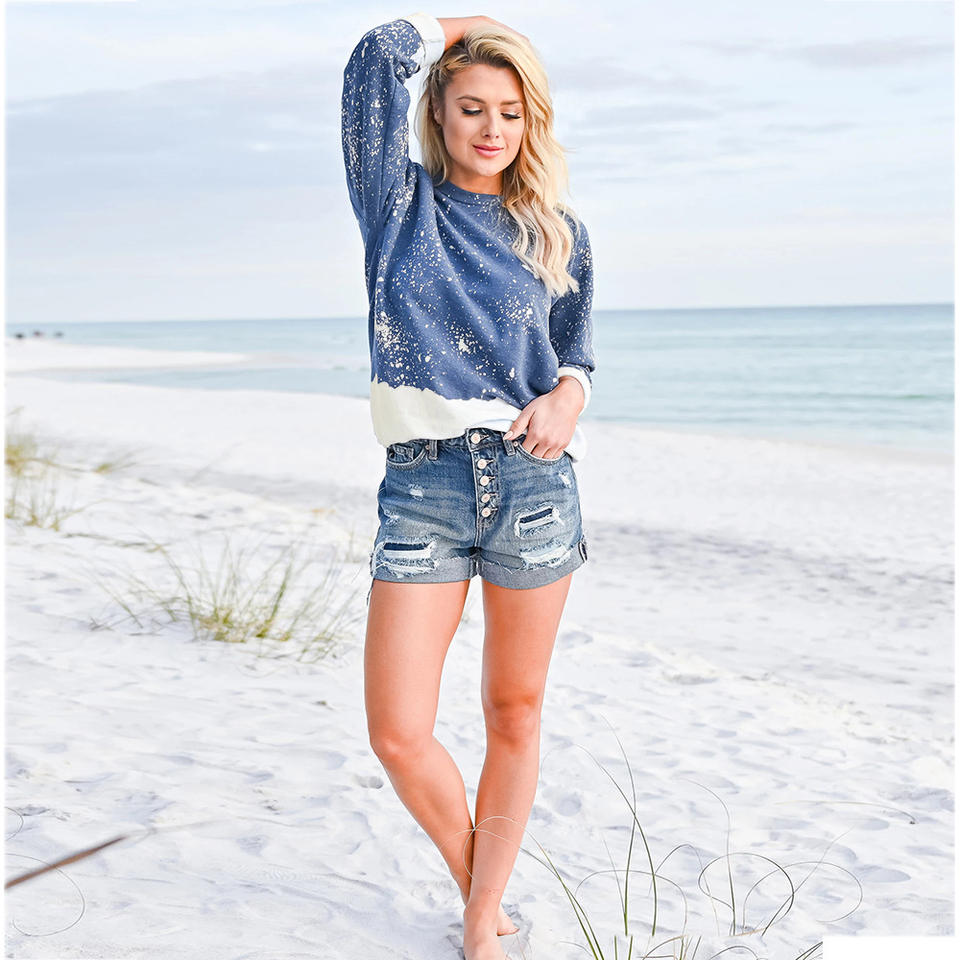 Women's Casual Loose Fit Plus Size T-Shirt Spring Collection Long Sleeve Tie-Dyed Breathable Knitted Fabric