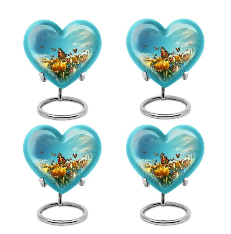 Spring Meadow Butterfly Heart Urn for Human Ashes Metal for Ashes Adults Custom Urns Mom Funeral Artful Flower Urn
