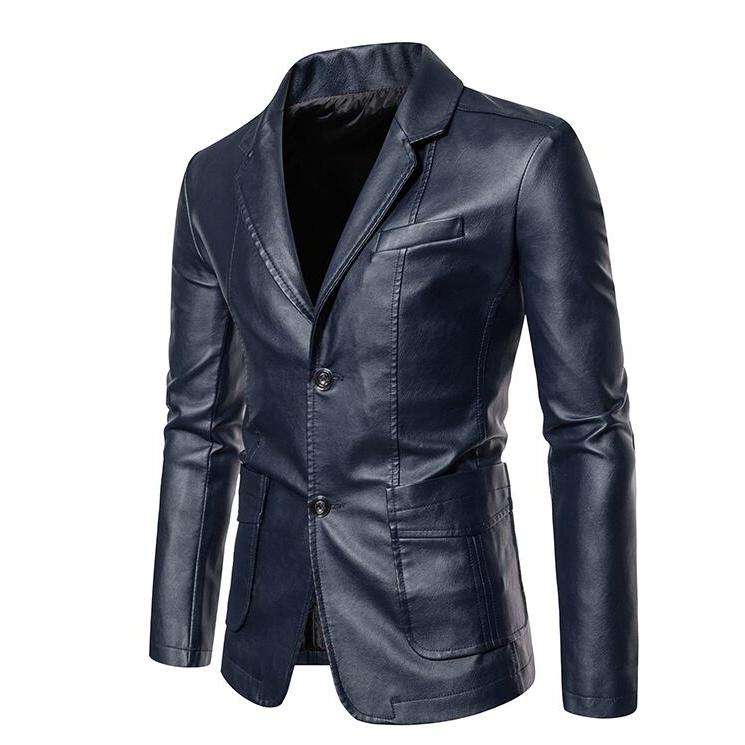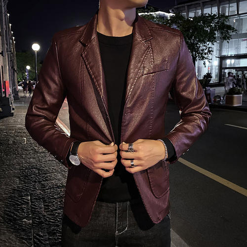 Men's Business Casual Slim Leather Jacket Spring New Black Red Blue Khaki Dark Blue Asian Styles Fashionable PU Suit Coat