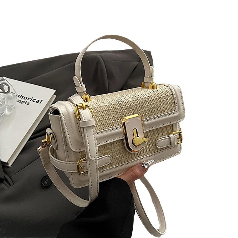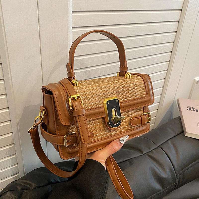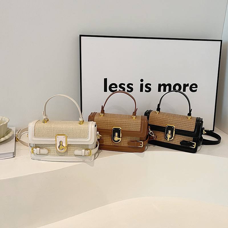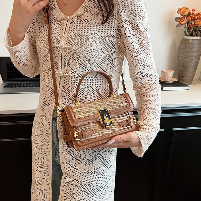 Spring New Simple Straw Shoulder Bag for Women Fashionable Handheld Small Crossbody Handbag Zipper Closure Portable Tanjing
