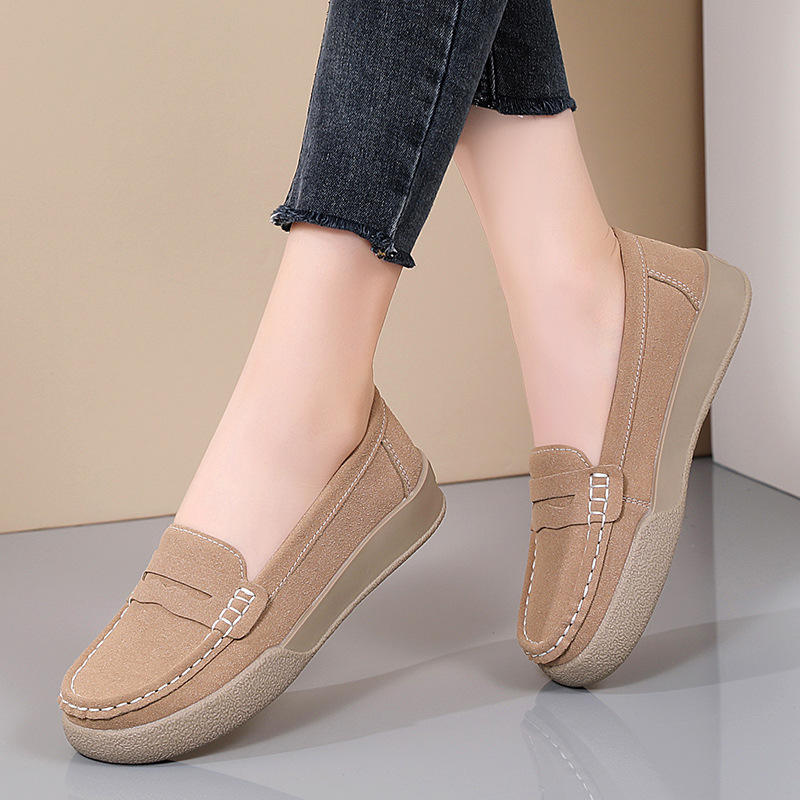 Spring New Style Genuine Leather Slip-on Women's Korean Style Casual Lazy Shoes Soft-Soled Comfortable Mother's Shoes