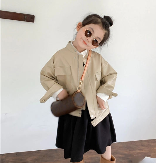 Spring New Trendy Korean-Style Blazer for Kids Boys and Girls Jacket Coat in Denim Motorcycle and PU Leather Baby Fashion