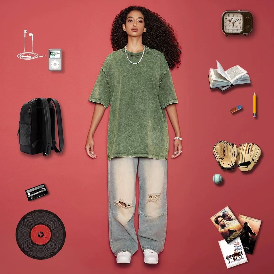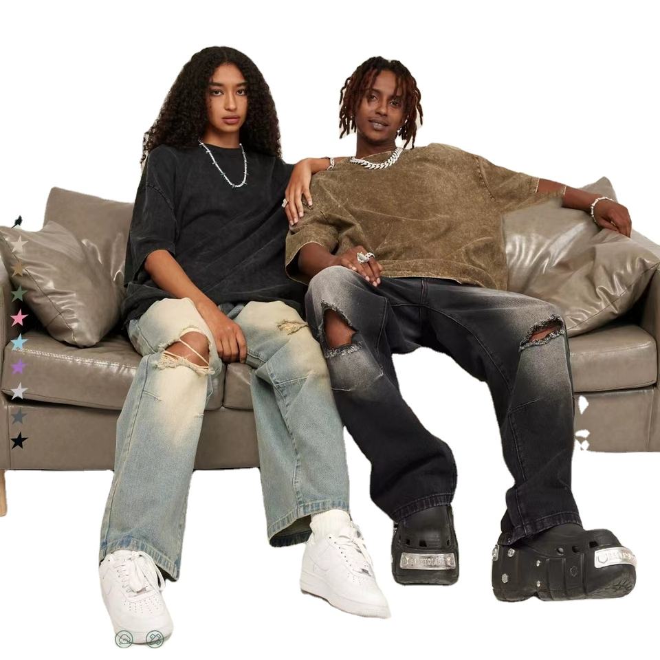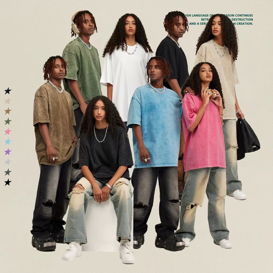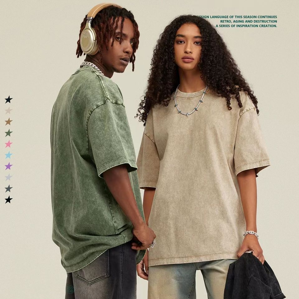 Spring Summer 285G Heavy Wash Batik Round Neck Short Sleeve American Vintage Heavyweight Acid Wash T-shirt for men