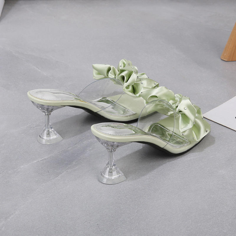 Spring Summer Collection Ladies' Cushioning Soft Flexible Square Head Triangle Thick High Heels Shoes Comfortable Women's