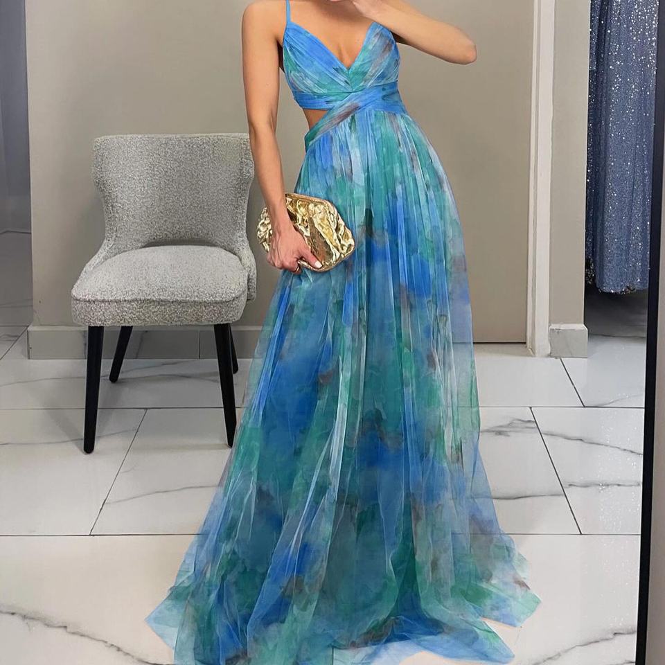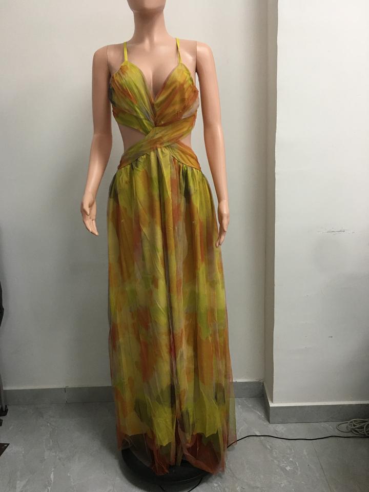 Spring/Summer New Arrival Mesh Print Spaghetti Strap Dresses Fashion
