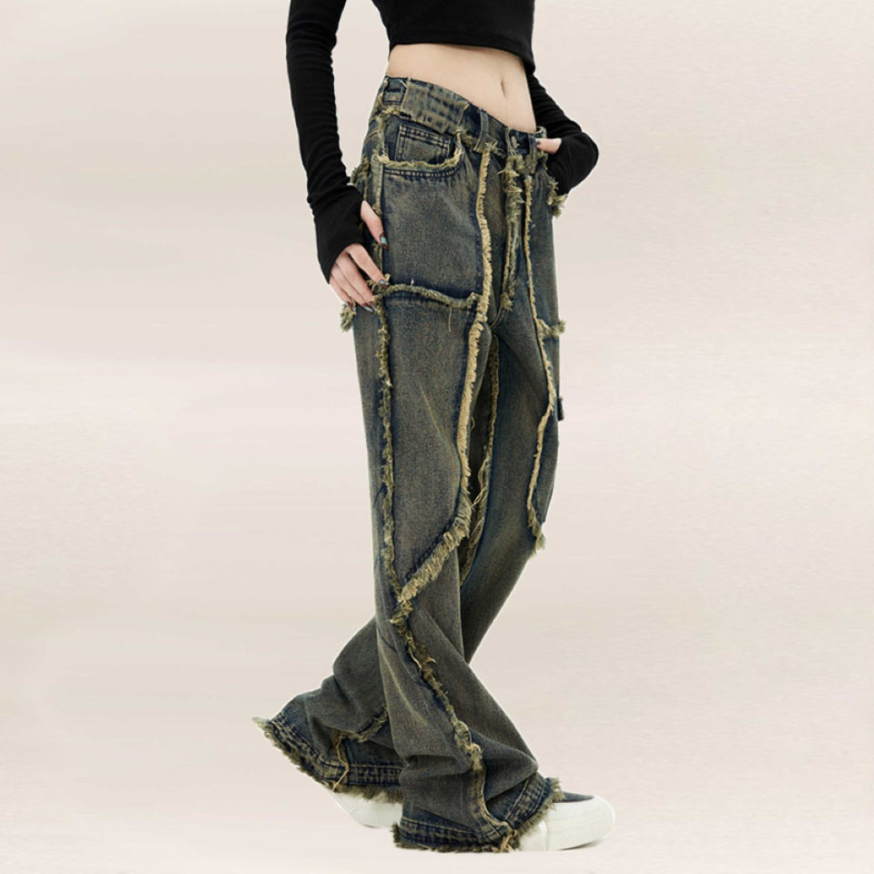 Spring Summer Season Wide Leg Casual Breathable Women's Jeans All Over Distressed Design High Waist Denim Ladies Pants