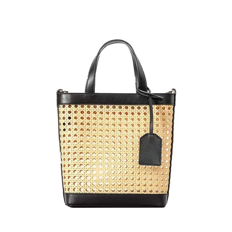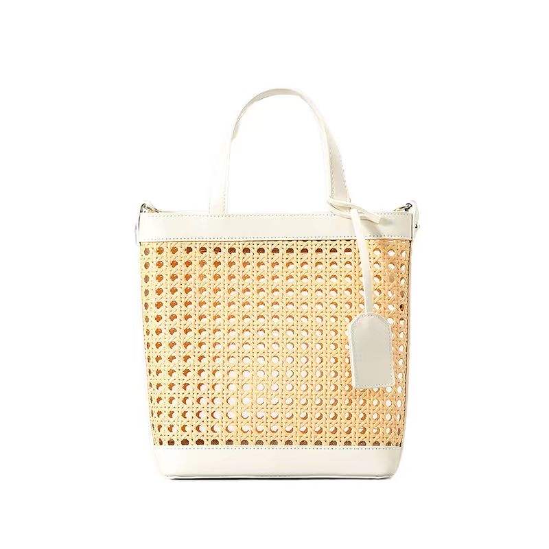 Spring Summer Winter Fashion Portable Handmade Straw Women's Beach Handbag with Hollow Out Design for Seaside Holiday