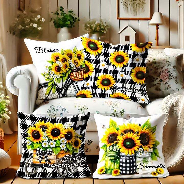 Spring Sunflower Daisy Floral Buffalo Plaid Pillow Decorative Back Sofa Cushion Cover Affordable Luxury Style