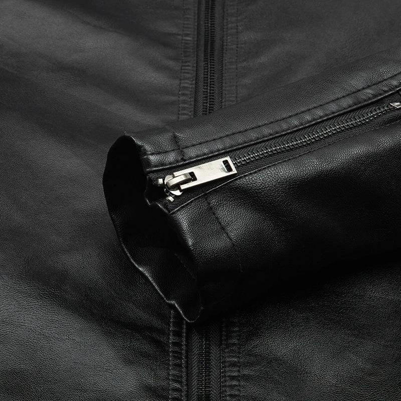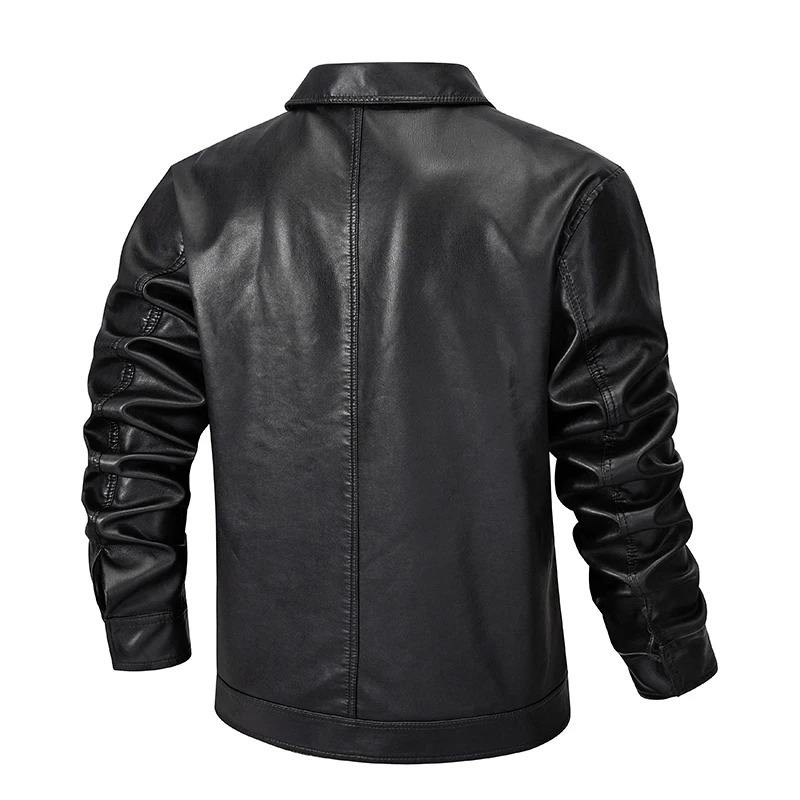 Spring and Autumn Men's Motorcycle Full Grain Leather Jacket Large Size Pocket Black Zipper Lapel Slim Coat Male High Quality