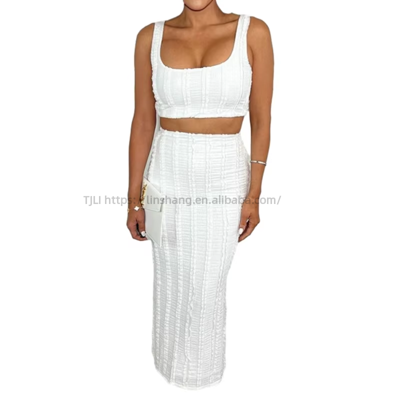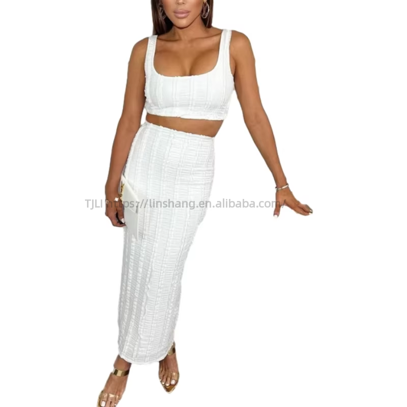 Spring and Summer New Striped High Stretch Backless U Neck Vest Elastic Waist Long Skirt Women's Two Piece Set Fashion