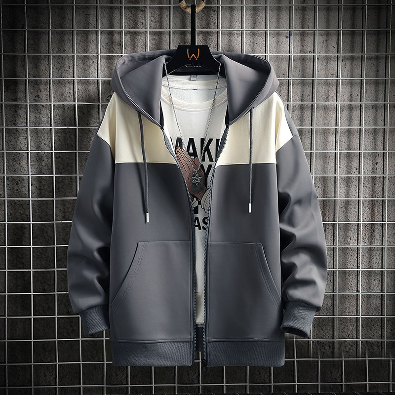Spring and autumn new cardigan hoodie loose match color casual fashion coat soft material breathable skin friendly comfort