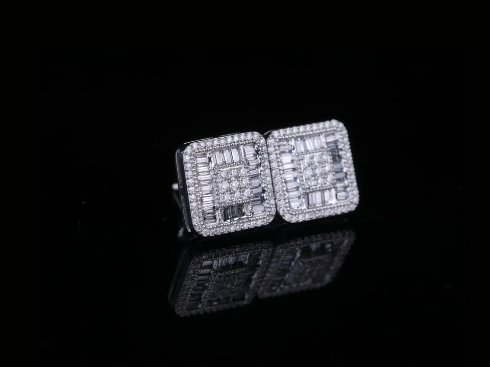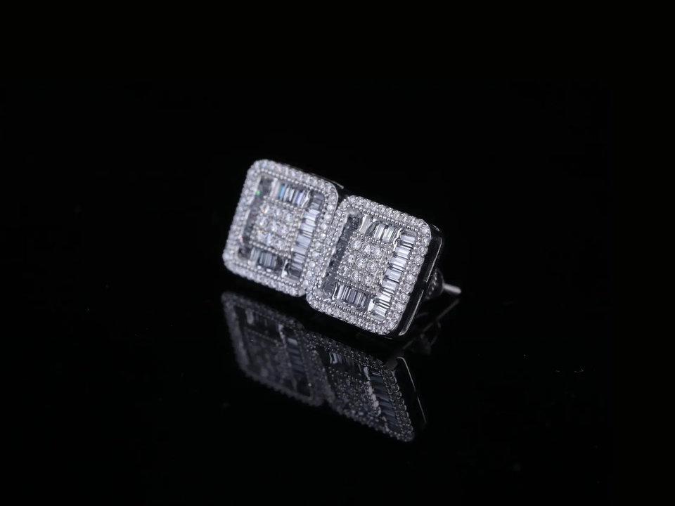 Square Baguette Cluster Stud Earrings Silver Iced Out Screw Back Hip Hop Moissanite Diamond Look Luxury Jewelry