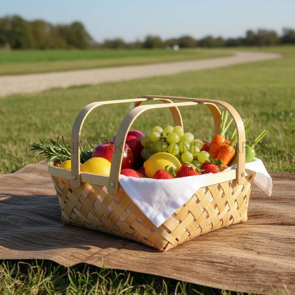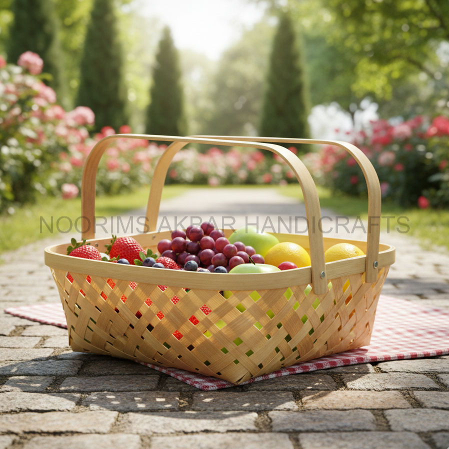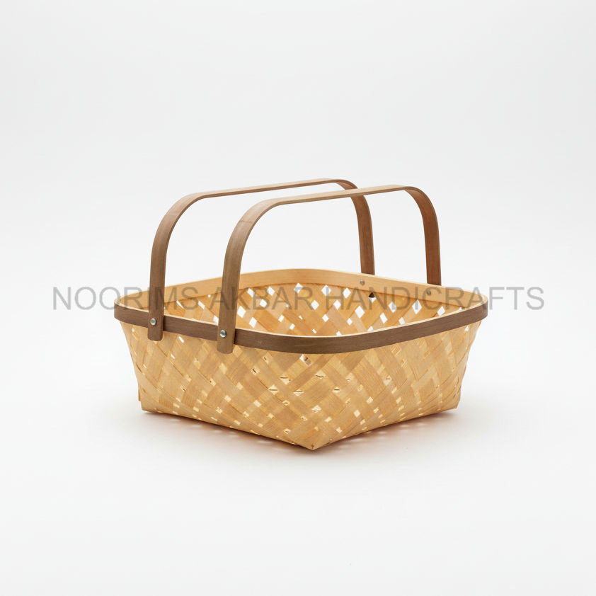 Square Bamboo Basket Natural Handmade Eco Friendly Design with Two Handles Home Storage Organizer Bulk Supplier Factory Exporter