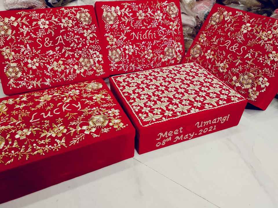 Square Bridal Box for Trousseau Sarees Hampers & Jewelry Premium Quality in 2025 Red Velvet Embroidered Gift Box Handcrafted