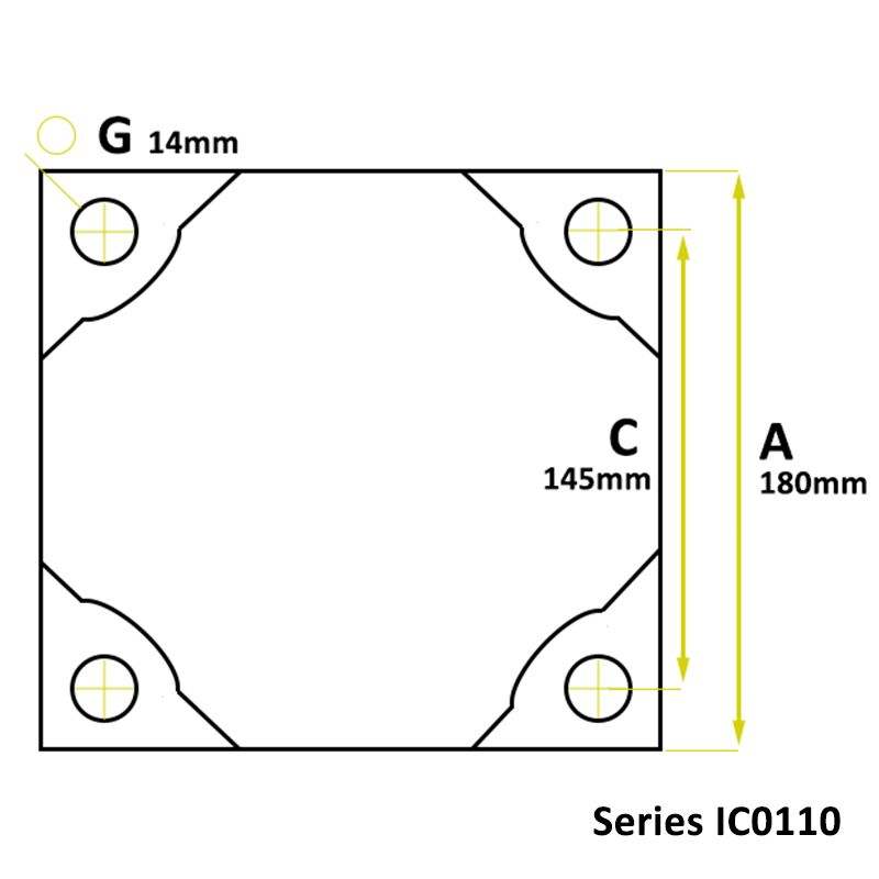 Length: 180mm x 180mm,Bolt Centres: 145mm,Height: 90mm,Bolt Hole: 14mm