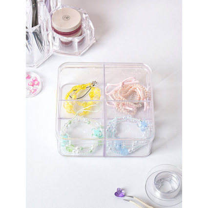 Square Clear Lid Storage Box with 4 Compartments for Jewelry Organizing